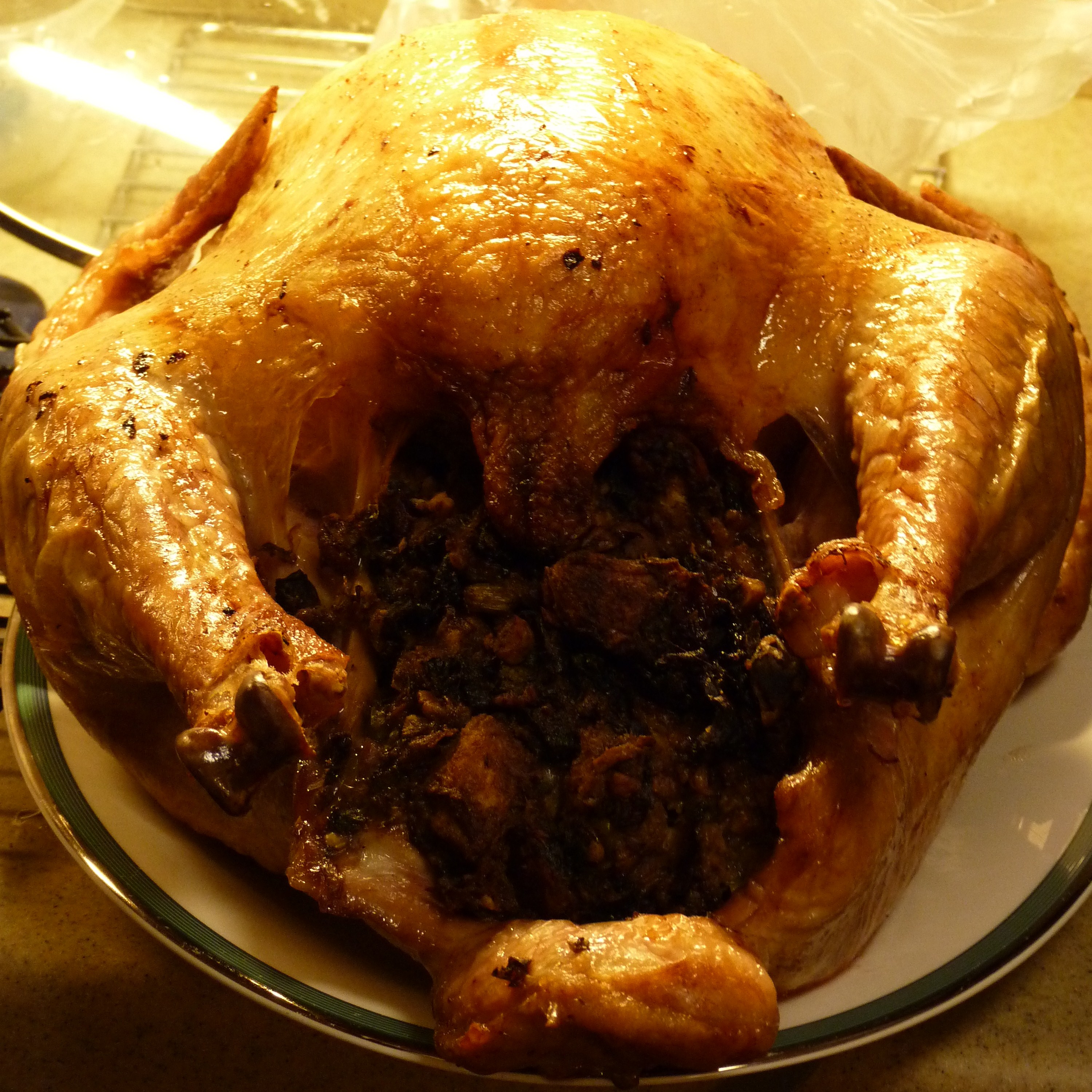 Ceci dit, Thanksgiving est une fête hyper chaleureuse où les gens vous accueillent avec une gentillesse incroyable même si vous êtes Française et que vous critiquez les Etats-Unis toutes les deux phrases ! Par contre, on y reprend en une soirée les kilos péniblement perdus depuis quelques mois, voyez plutôt la bestiole qu’on a mangé ! Et c’était la plus petite du magasin, le boucher ayant expliqué à mon hôtesse qu’il estimait le poids de viande consommé par personne à un bon kilo…