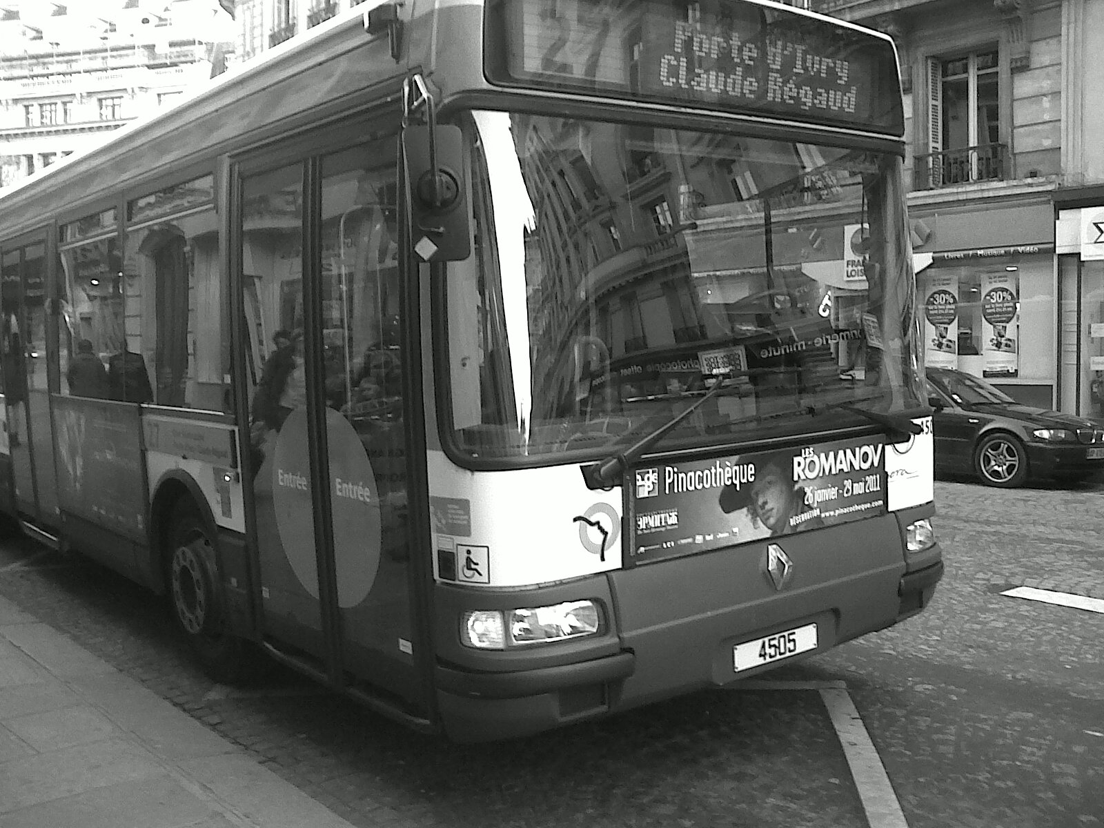 Of course, the worst are the old women (sorry: “the elderly women”, let’s be politically correct). They quickly step into the breach, either by placing themselves in front of you, looking exhausted, or by directly asking you to get lost. I must admit it’s morally bad not to (want to) step aside for a “fragile” person, but who, among us, does it gladly? The bus is barbarian because it’s “every man for himself” in its raw violence, quite apart from the fact of never ending traffic jam in the Parisian urban region (stress increases while you realize you’re going to be 5, 10, 15 minutes late, which adds to the prevailing irritation), and of the bodies’ compression during rush hours that makes the struggle for a seat even more ferocious. And whom do you hate more than the poor bus driver when he slams on the brake and when the packed bus provokes violent physical contact (walking over other’s feet, bottom’s kick, or else)?