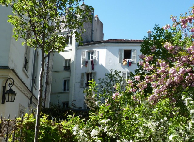 Des fleurs et du linge à la fenêtre