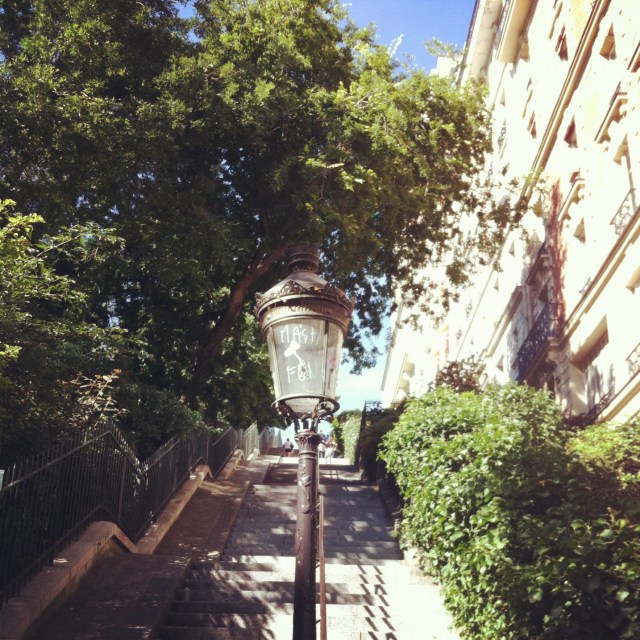 Il fait beau à en pleurer, avec un bon petit vent frais, tu as fait des listes de karaoké lu Montaigne toute la nuit en buvant du rouge lait-fraise (hello, my head, how are you today?) (but really you don’t care), c’est un jour de soleil dans les parcs, de bonbons de glaces et de barbapapa, de sieste abrutie sur des pentes herbues, un jour à prendre les escaliers même s’il y a l’ignoble meringue versaillaise au sommet, un jour à monter et descendre en attendant que Paris apparaisse au coin de ton œil, un jour où tu as envie que tous les gars et les filles du monde se prennent la main et que les Bisounours prennent le pouvoir.