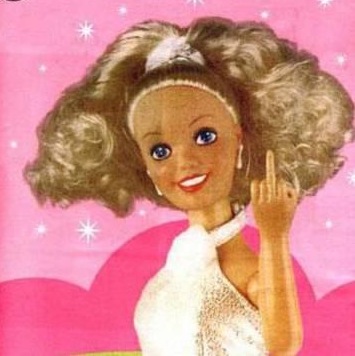 La pouffe, quoi qu’il en soit, ne trompe jamais sur la marchandise (à part un ou deux soutifs pigeonnants par-ci par-là), sain principe d’honnêteté que Lonesome Camionneuse a fait sien depuis longtemps (il n’y a que Sneaky Princess pour trouver acceptable les jupes sous le genou). La pouffe va donc court vêtue, le talon élevé, la mamelle en liberté, et laisse saillir ses appas telle une figure fellinienne et tentatrice. Elle est plutôt blonde (les clichés ont la vie dure, et la teinture n’est pas donnée, hélas) et manucurée. Souvent, la pouffe se complaît également dans un retour à l’enfance (prédilection pour le rose, couettes, sucettes à l’anis) (a-t-elle bien compris de quoi il s’agissait ? nul ne le sait vraiment). Pensez Barbie, à guichets ouverts. Bien entendu, elle n’a aucune prétention intellectuelle car, pfffff, à quoi cela servirait-il, elle va se trouver un mari riche qui lui paiera ses manucures (en cela la pouffe a quelque semblance avec Sneaky Princess, voyez que tout est toujours plus compliqué que cela n’en a l’air) (que c’est fatiguant !) Néanmoins, si l’envie lui en prend, elle peut se transformer en redoutable avocate d’affaires issue des grandes universités (cf. l’excellent film Legally Blonde, qui traite cette question en détail) (certaines abdiquent néanmoins cette option leur vie durant, BB à leur tête) (réfléchir, belle perte de temps que voilà !).