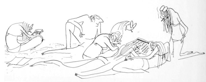 Une fois installée, s’instaure la question de la dynamique de groupe et des desideratas divers des uns et des autres. Quant à moi, si je pouvais planter une pancarte « Foutez-moi la paix » sur mon chapeau, ce serait avec le plus grand plaisir, mais il paraît hélas que ce n’est guère civil. Qui veut commenter les dernières aventures de Brad Pitt et Angelina Jolie, qui veut jouer aux cartes (épreuve ultime, pensum absolu : non seulement je suis mauvaise perdante mais en plus je joue mal car je n’ai jamais vu l’intérêt de travailler la chose. Résultat : frustration et souffrance), qui au ballon, qui veut aller nager. Bon là, c’est quand même assez logique, vu qu’on est à la plage. On ne peut pas dire non tout le temps. Mais bon sang, que c’est ennuyeux, tout ce sel, c’est mauvais pour les cheveux, et puis y a des méduses qui circulent en bancs, sans compter que les enfants pissent dans l’eau c’est bien connu moi-même je l’ai fait fort longtemps. Tout ça pour quelques brasses en maintenant tant bien que mal ta tête hors de l’eau pour ne pas perdre tes lentilles ni tes lunettes de soleil (oui je me baigne avec mes lunettes de soleil merci bien, vous avez déjà expérimenté la réverbération du soleil quand on a les yeux d’un albinos handicapé ?).